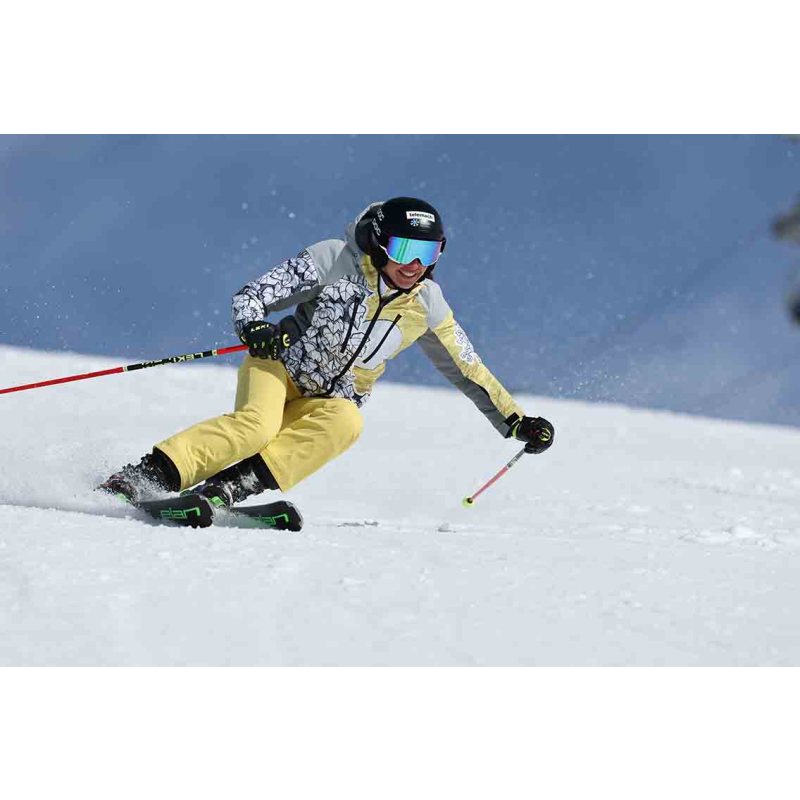 Con il suo motivo etnico originale, X-RAY PRIME rappresenta un aspetto vivo ed estremamente entusiasmante della nostra cultura e identità, ancora vivo oggi. Misticismo, la forza delle forze della natura, il ritmo della vita – il design della giacca da sci da uomo X-RAY PRIME è una combinazione di tutto questo. La lotta contro gli elementi, la vittoria su di essi e la conquista della pista da sci – X-RAY PRIME sarà sempre il tuo fedele compagno nel percorso verso la vetta e ritorno. Il tessuto elastico in quattro direzioni LAKA 20_20 garantisce un’eccellente traspirabilità, permettendo alla pelle di respirare; è eccezionalmente resistente all’usura e, oltre a ciò, leggero e morbido al tatto. È inoltre facile da manutenere, poiché mantiene forma e colore anche dopo numerosi lavaggi. In combinazione con il suo rivestimento durevole idrorepellente (DWR) e colori ad alta resistenza UV, X-RAY ti preparerà per qualsiasi situazione sulla pista. Come extra della massima classe, la fodera PRO GRAPHENE si distingue per leggerezza eccezionale e comfort durante l’uso; possiede inoltre eccellenti proprietà di termoregolazione che le consentono di mantenere la temperatura corporea ottimale, indipendentemente dalle condizioni esterne. La fodera PRO GRAPHENE è estremamente resistente e adatta per più utilizzi senza perdere le sue qualità. Mantiene la sua forma e funzionalità anche sotto uso intensivo. Il materiale isolante ad alte prestazioni THERMOTEX 120, appositamente sviluppato per abbigliamento invernale, offre protezione e comfort superiori nei giorni più freddi. Grazie alla sua struttura innovativa e ai materiali di alta qualità utilizzati, THERMOTEX 120 trattiene il calore corporeo e protegge dal freddo senza aggiungere peso o volume inutili all’indumento. Cerniere di ventilazione, dettagli che proteggono il mento dal gelo, un cappuccio 3D funzionale completamente compatibile con il casco, sono solo parte degli extra che la giacca offre. Le tasche sono abbondanti e progettate per ogni tipo di utilizzo – per telefono o altri gadget, per lo skipass, per la maschera o gli occhiali, incluso un panno per la pulizia. Ci sono innumerevoli cose che ti distinguono dagli altri! Una di esse sarà sicuramente la tua giacca X-RAY PRIME, che renderà le tue avventure sulla pista ancora più emozionanti!