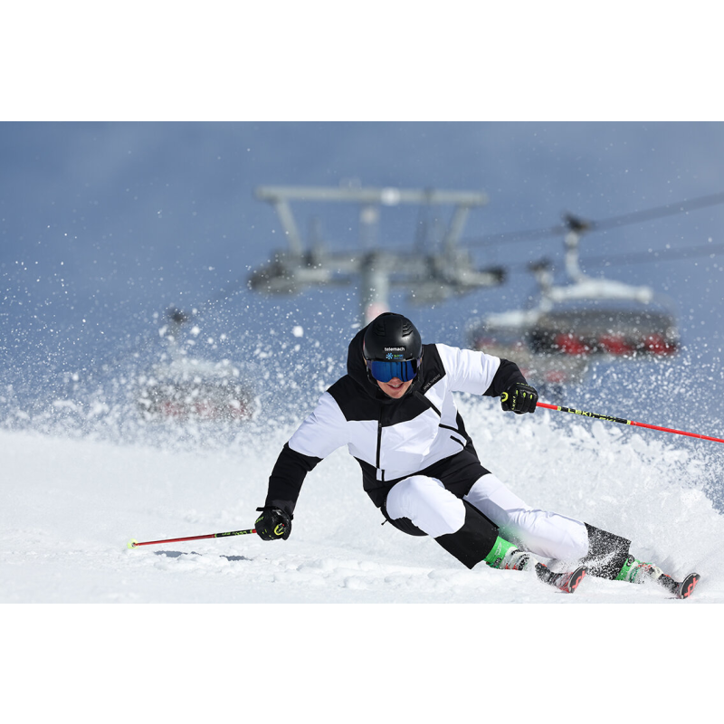 RINO – giacca da sci moderna realizzata con materiali innovativi e un attraente design asimmetrico con cerniera laterale frontale, creata per chi vuole distinguersi sulle piste.